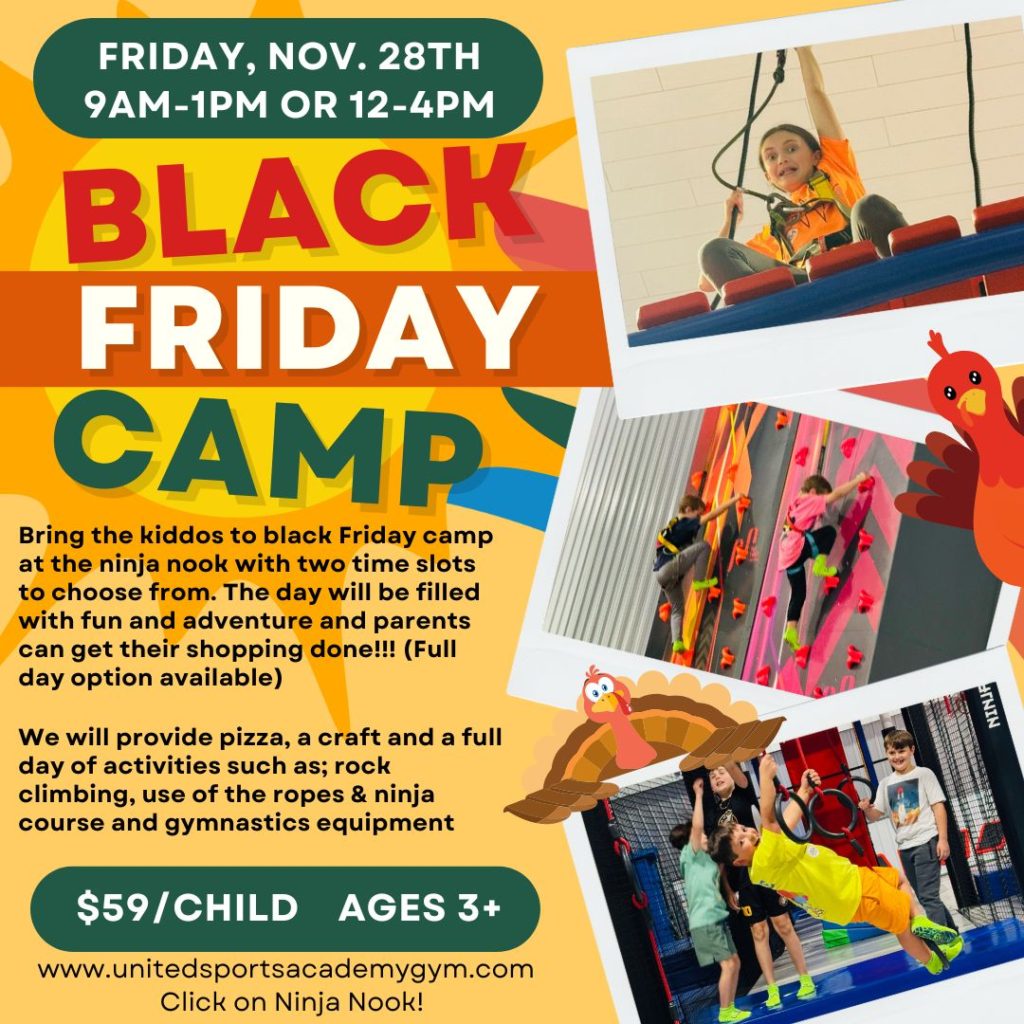 Have your child spend Black Friday 11/28 at the Ninja Nook while you are off getting your holiday shopping done. Also great for parents who do not have the day off!