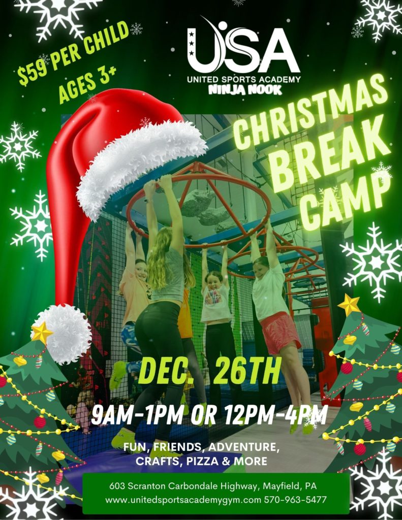 Christmas Break Camp will run on 12/26. Choose from from 9am-1pm or 12pm-4pm. Pizza will be served at 12 noon for both groups. Full day option available by request