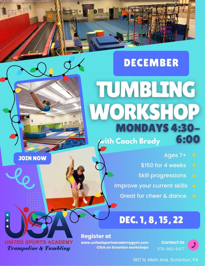 December TUMBLING FOR CHEER workshop will be held on Tuesdays at our Scranton location.